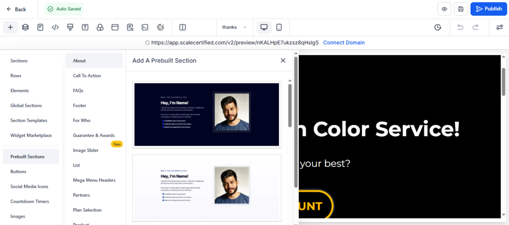 - Pre-designed templates: Choose from hundreds of professional templates across various business niches including beauty and wellness, financial services, coaching, real estate, and more.