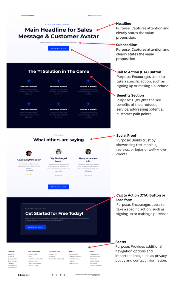 - Create landing pages with clear value propositions and calls-to-action